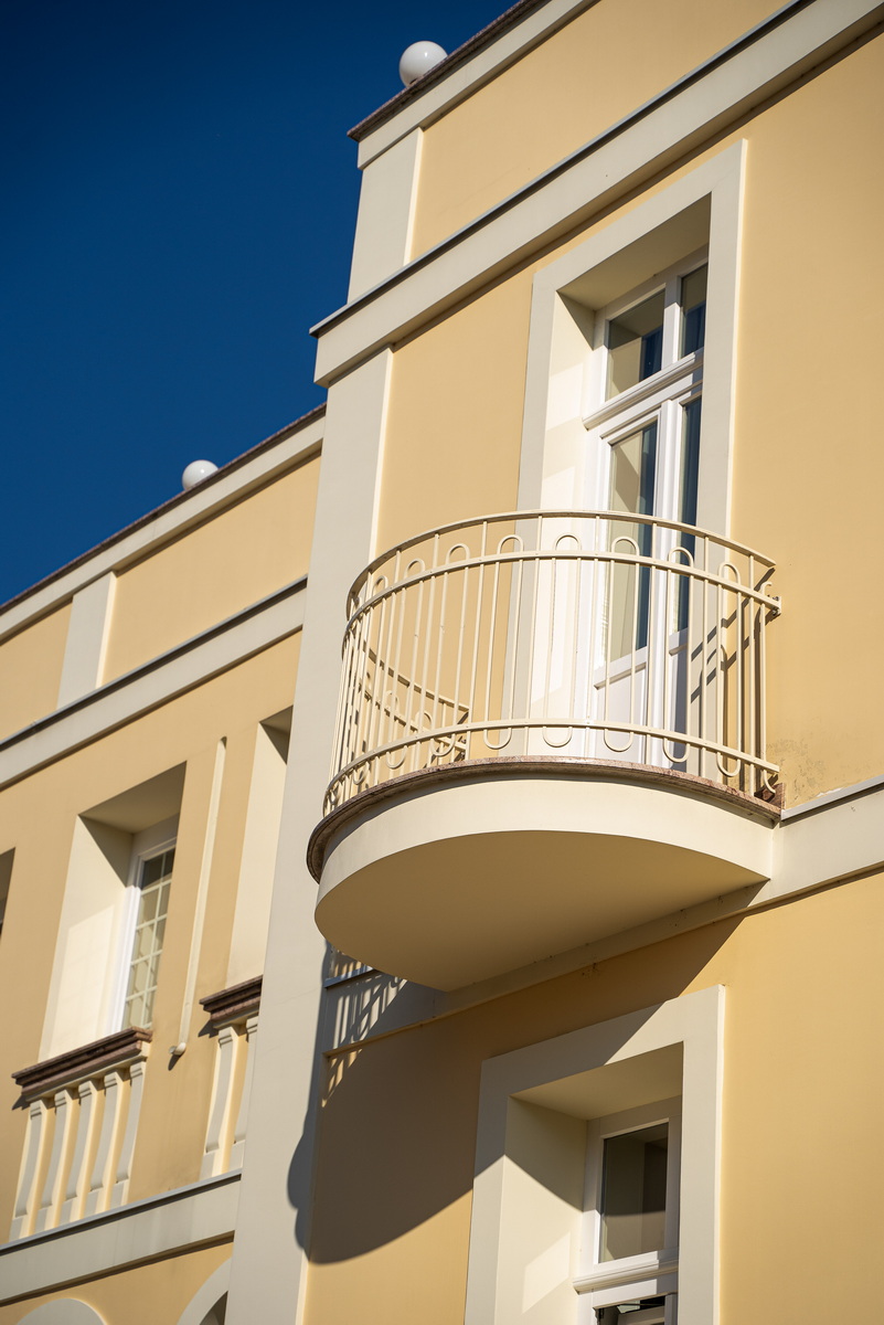 Dva bočna rizalita imaju polukružne balkone na spratu sa ogradama od kovanog gvožđa; sačuvani su i drugi dekorativni elementi iz perioda, poput profilisanog krovnog venca. Mnoge ličnosti su boravile u ovom pansionu, od kojih je najpoznatija glumica Žanka Stokić (1887-1947), često smatrana „srpskom Sarom Bernar“.